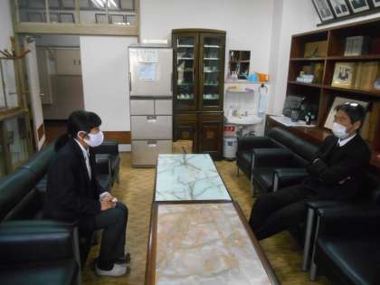 文化祭実行委員長が、文化祭での教員によるギターと歌の感想を校長に聞きに来てくれました。すべての団体(代表あり)にインタビューしているそうです。ありがとう、すばらしい。