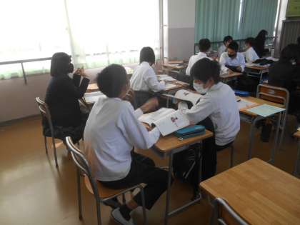 1年生の英語です。教科書の英文をスラスラ読めるようになり、英語の先生と英会話をしているところです。
