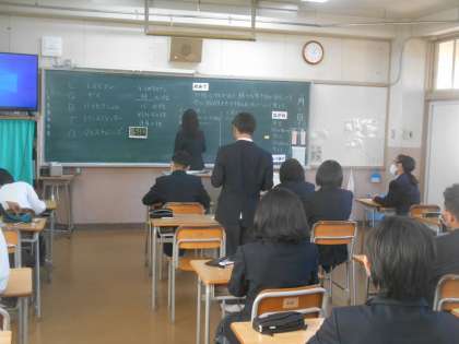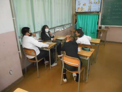 研究授業で後ろにはずらりと先生が並びましたが、生徒たちは120%ふだんのまま、いや、それ以上にがんばりました。すばらしい。講師の先生からも「集団がとてもまとまっていますね。」と言葉をいただきました。その理由は、グループでの話がスッとできたこと、男女の壁がないこと、本音を出し合えていることなどです。