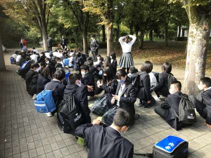 昼食が終わり、いよいよピースおおさか入館です。その前の健康チェックです。