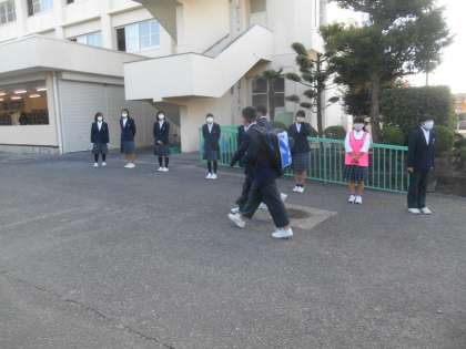 朝のあいさつ運動です。8時15分ごろの様子です。