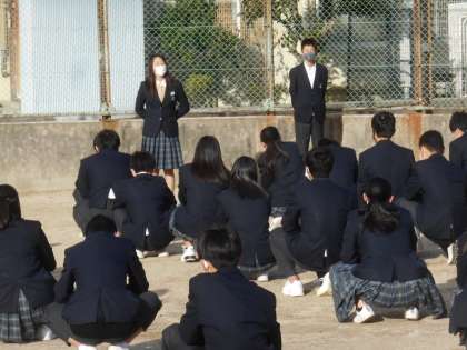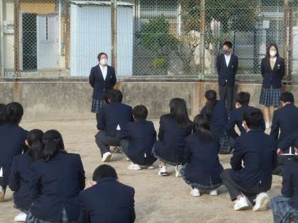 今日は朝に全学年の学年集会がありました。写真は3年生の様子です。学級委員より先日の高校や専修学校の出前授業の感想が述べられていました。英語がとても印象的だという話をしていました。