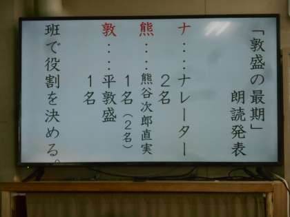 古文の敦盛の最期(平家物語)の朗読劇の準備をしているところです。いろいろなことにチャレンジしますね。古文に慣れ親しみ、スラスラ読めることがまず大事です。