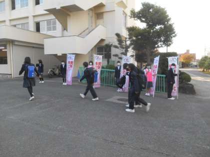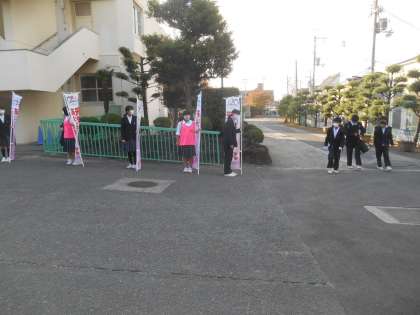 今日も生徒会役員の人たち、専門委員の人たちがあいさつ運動に参加しました。ありがとう。一段と寒くなった朝でした。