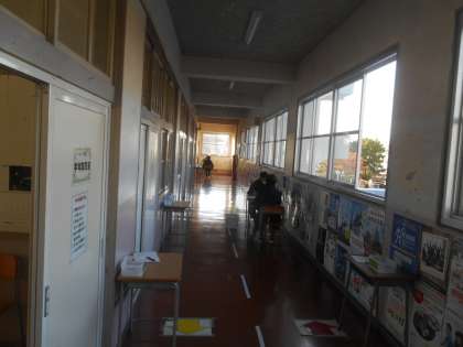 3年生は進路に向けて、一直線です。6限、教室内は自習で、廊下で担任の先生と進路について懇談をしていました。ですので、遠くから撮影しました。