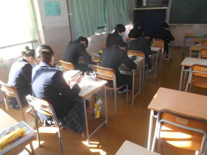 証明問題を解いているところでした。難しそうですが、分かっている人に教えてもらう人もいて、しっかり勉強していました。