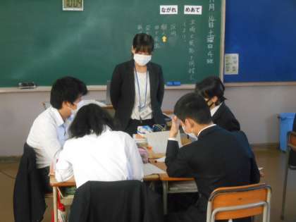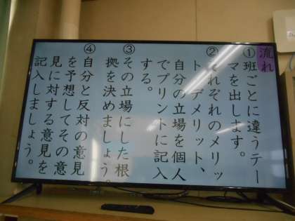 2年生の国語です。グループごとにテーマを変えて、それをもとに意見をたたかわせていいます。
