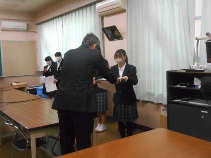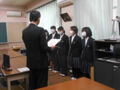 今日は生徒集会の日でした。生徒会役員の人が進行しました。2、3枚目はバドミントン部の表彰の様子です。すばらしい。