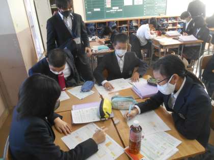 この授業も学習班の活動中でした。天気について学習し、プリントの問題で理解を深めています。先生にも質問しますが、クラスメイトにも教えてもらいます。先生は一人ですが、理解しているクラスメイトは多くいるので、気軽に質問しやすいようです。仲の良いクラスでないと学び合いは深まりませんね。