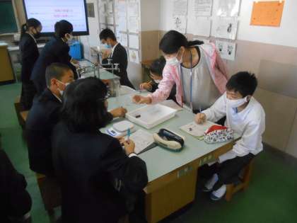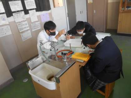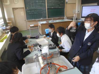 1年生の理科です。メスシリンダーを正確に読み取り、実験に生かします。