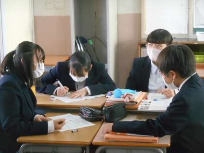 憲法で保障されている社会権について学び、考えました。生きていくうえで欠かせないものをグループで考えました。その結果が黒板に書かれています。ものすごく大事な勉強だと思います。人間は長い歴史の中で、奴隷制が当たり前の時代や貧富の差で幸福な人とそうでない人がいて当然という時代がありましたが、ドイツのワイマール憲法が「誰にも社会の中で健康で文化的生活を最低限、営む権利を有する」と世界で初めて制定したそうです。今の日本国憲法もそれにならっています。このことは知っているのとそうでないのと、今後の人生が変わる可能性があると社会の先生と熱く語り合いました。