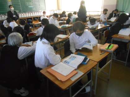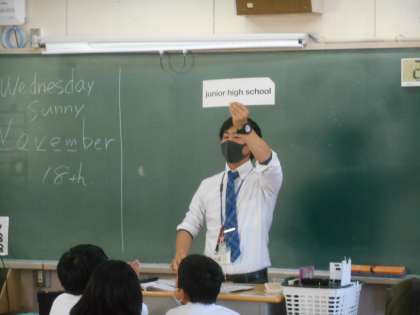 What time is it?の文章を使って、〇時ですと答えることを繰り返し練習していました。また、ブラジルと日本は地球の反対側にあることから季節や時刻が反対であることを英語で学びました。