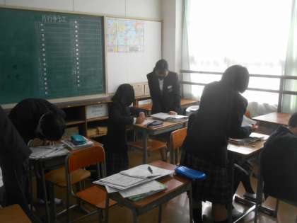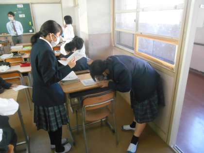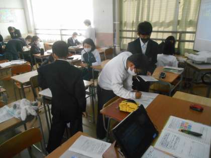 なるほどと思う授業でした。1年生の社会です。アマゾン川流域の環境破壊に対して、先生が説明し、自分たちに何ができるかを個人で考えたのちに、クラスメイトと意見交流をしています。知識を増やし、そこから思考力・判断力を成長させ、意見交流することで表現力を高めるとともに深い学びにつなげています。すばらしい。