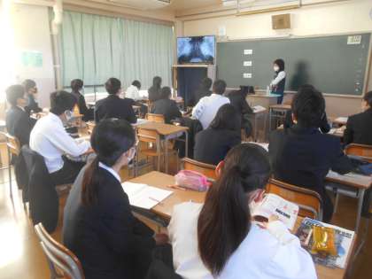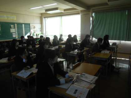 3年生の保健の授業です。前回はタバコの害について勉強しました。今日はアルコールの害について学びました。一定量のアルコールを越すと脳の細胞を破壊し、アルコール依存症になるそうです。こわいです。