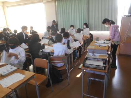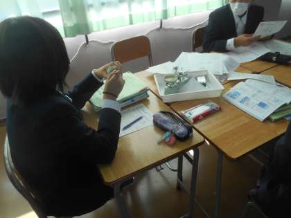 1年生の理科です。今日は上皿てんびんで食塩3グラムを量りました。これがなかなか難しい。