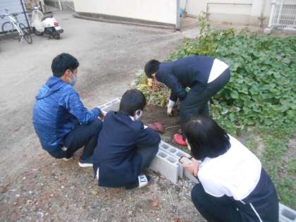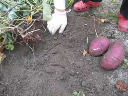 昨日の放課後の写真です。「校長先生。さつまいもを収穫するので見に来てください。」と生徒が言ってきたので、大喜びで行きました。すると、立派なさつまいもが土からもっこり出てきました。すばらしい。どうやって食べましょうか。