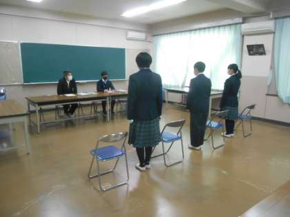 「職業面接」というのも、少し変ですが、「自分の就きたい職業」について、志望動機や自分自身の課題、自己PRなどを事前にエントリーシートに書き、それをもとに校長が面接をしました。面接は何といっても適度の緊張が必要ですが、全員がしっかり緊張して臨んでいました。すばらしいと思いました。
