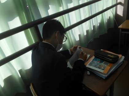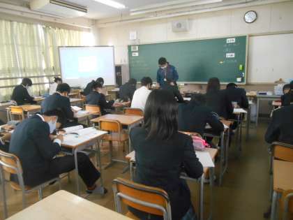 この人だけではありませんが、集中しているところの後姿を撮りました。3年生の社会です。