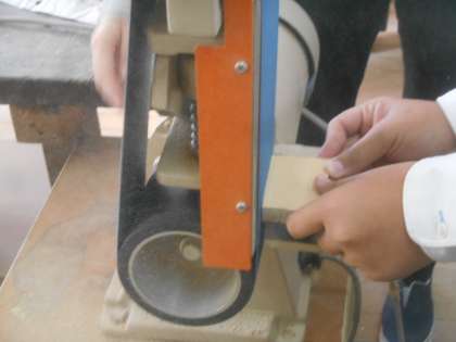 「サンドベルトが使えます。」と先生が言うと、軽く歓声が上がりました。使えるといい作品ができることを知っているのですね。器用に使っていました。将来、木工、DIYをするときに中学校で木を切ったり、こういう器具を使っているとものすごくやりやすいし、大げさに言えば、豊かな生活に少しでも貢献できると思うのですが。この前の技術でははんだごてを使っていました。
