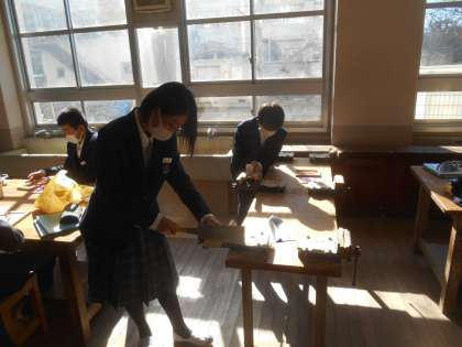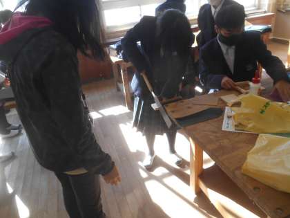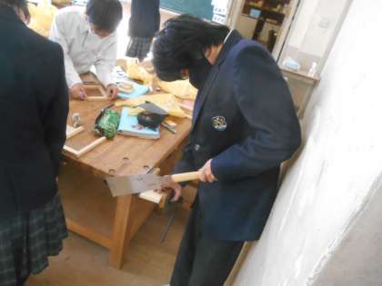 のこぎりで木を切っています。家具屋さんに行けば、組み立て家具が豊富にありますが、基本にもどって、木を切る経験も無駄にはならないと思います。