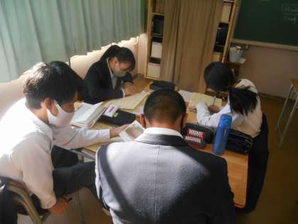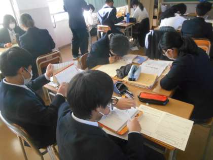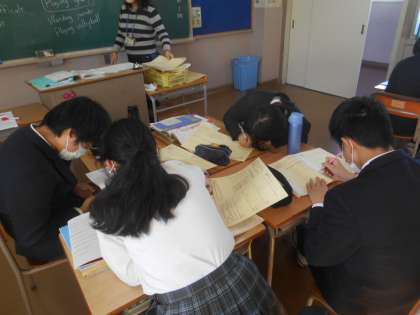 この授業も活気がありましたよ。教科書の文章が劇風になっているようで、役を決めて寸劇の練習に入るところです。気持ちを込めて言わなければなりません。