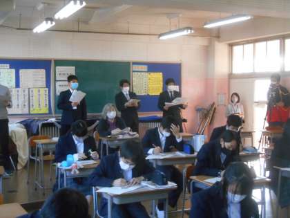 今日の6限は音楽の研究授業でした。コロナの関係で歌も全力ではやりにくく、鑑賞の授業です。