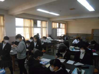 V=IR(電圧=電流×抵抗)を理科でも習いますが、技術でも復習し、その確認問題を解いていました。技術の先生は、先週は木工室でのこぎりやサンダーベルトを扱い、今日は金工室ではんだごてを用意していました。