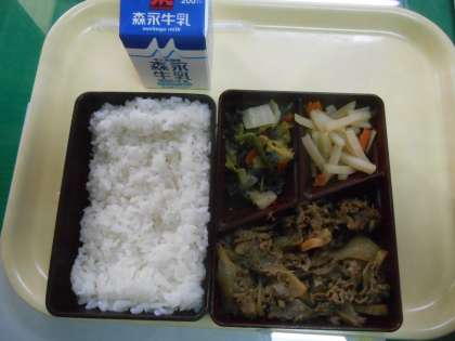給食のことなので、好みのある話ですが、今日のメニューは豪華でした。和牛の特盛丼です。おいしかったです。