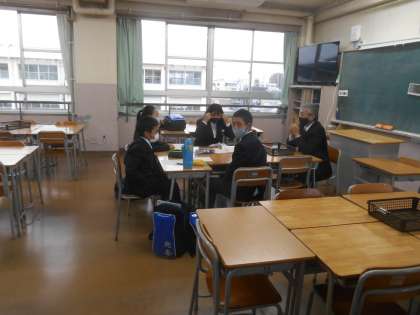 1年生の学級委員会です。学年のことで相談していました。今回、2年生の学級委員会を取材できませんでした。校長が行くのが遅れたからです。すみません。