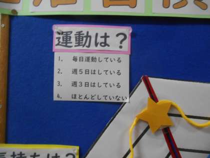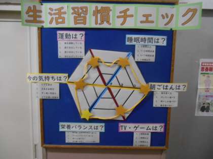 保健室前の廊下に掲示されました。毎日、いろいろなことで流れていきますが、健康が何より大事なことは間違いありません。一度振り返ってみませんか。