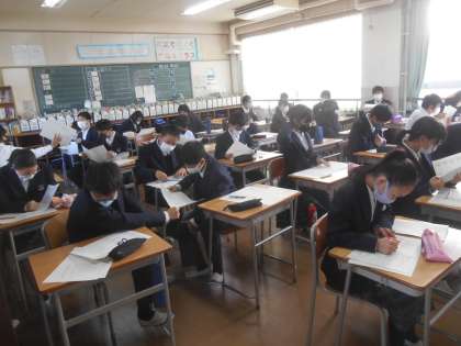 成績表を一人ずつ返してもらっていました。その後、2学期の学校生活の振り返りをしていました。もう、そういう時期になったのですね。