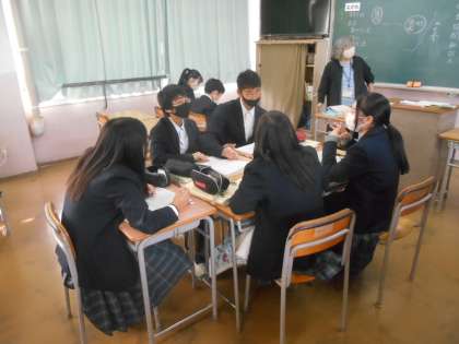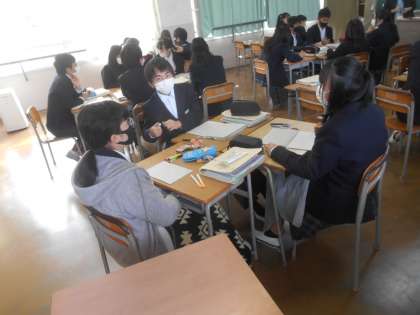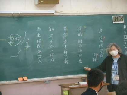 3年生の国語です。黒板には有名な漢詩が書かれています。情景を班ごとに考えているところでした。