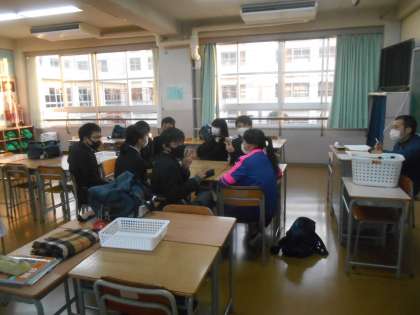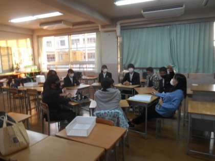 生徒議会や班長会は北条中の生命線です。クラスの現状を振り返り、課題があれば改善策を考えています。3枚目は、2学期残り少ないけど、がんばってより良いクラスをさらにめざそうと気合を入れているところでした。(校長が行く寸前に終わっていたので、頼んでもう一回してもらいました。ごめんなさい。)