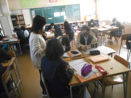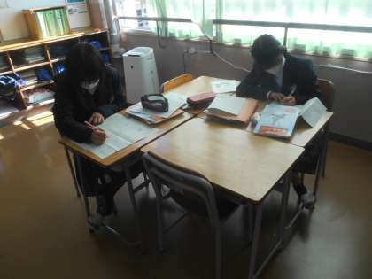 教科書を見ながら集中して課題に取り組んでいました。2年生の国語です。