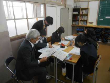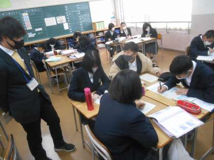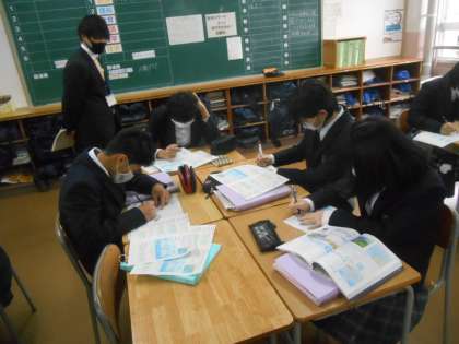 移動性高気圧、低気圧などの言葉が飛び交っていました。始めに先生の説明があって、その後に問題プリントで確認しています。
