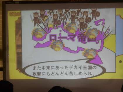 歴史です。ローマ帝国について、映像を見ていました。ユーモラスな構成のビデオで楽しみながら勉強していました。