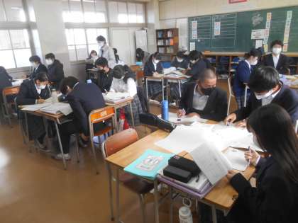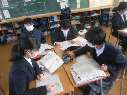 こちらも府のチャレンジテスト対策をしていました。30分間テスト形式で残りの10分は他の人に教えてもらえます。