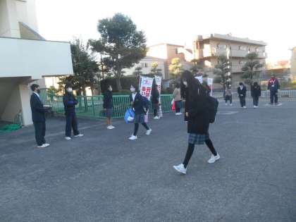 今日もあいさつ運動で一日が始まりました。あいさつをした生徒にティッシュが渡されます。一度に大勢が登校したときには渡せないこともありますが。