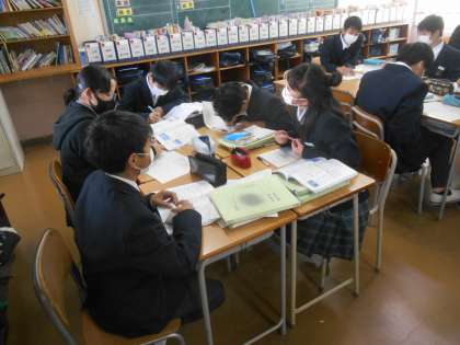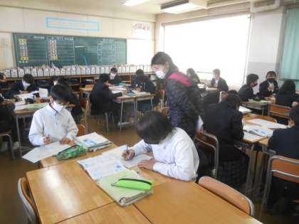 1年生の理科です。テレビに溶解度曲線が大きく映し出されていました。その意味を読み取ることがねらいの授業でした。