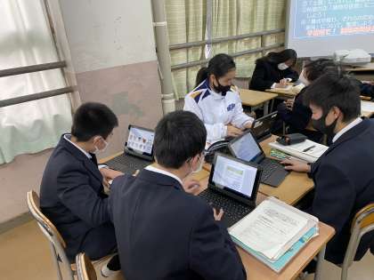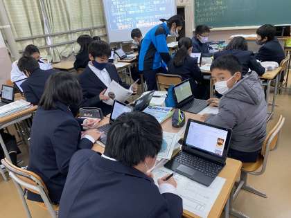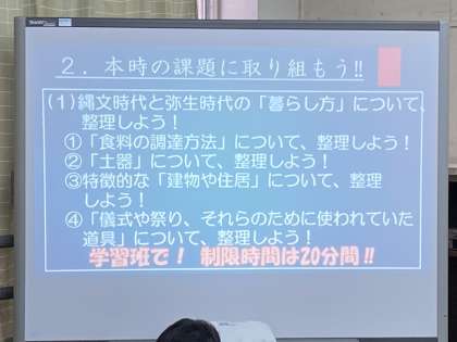 1年の社会科です。先週にタブレットPCを配付したのを受けて、早速授業で活用しました。このスピード感に、驚きました。素晴らしい。