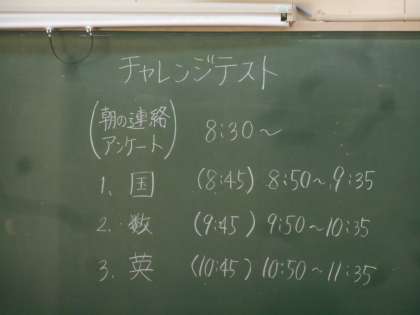1年生が初めてのチャレンジテストを受けました。1年生は、国語・数学・英語の3教科です。