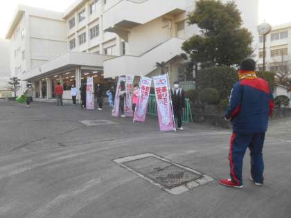 今日の寒さは少し和らぎましたね。2枚目の写真は自主的にあいさつ運動に参加した生徒です。だれよりも大きな声で「おはようございます。」と繰り返していました。聞いていて胸がカーッと熱くなりました。ありがとう。