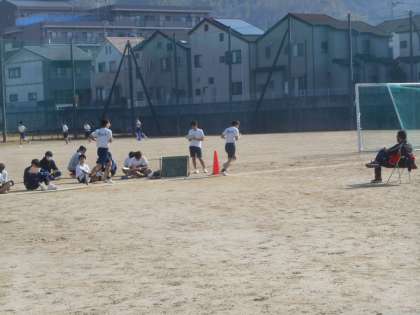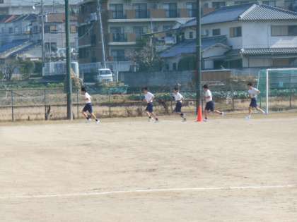 3年生の男子体育です。今日も全力で走っていました。応援の声が飛んでいました。