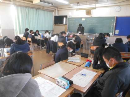 今日の2年生は、就職差別について学びました。社用紙といって、以前聞く必要もないことをいろいろ聞いて、それを入社試験の合否に使っていた時代がありました。いろいろな働きかけのおかげで、今ではそんなことを聞くことは許されなくなりました。住んでいる場所や兄弟の数で合否が決められてはたまりません。