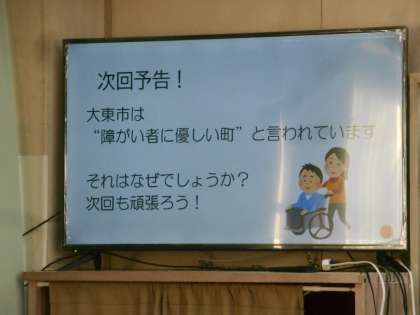 1年生の総合では、障がい者差別について学びました。先生が「たとえば、私は目がとても悪いのだけど、メガネがあると不自由なく暮らすことができます。」と話していました。引き続き、学びます。