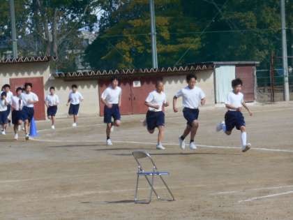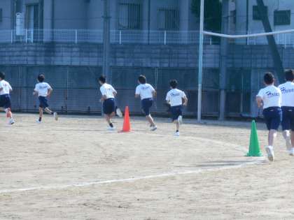 1年生の男子体育です。15分間走が終わり、1500m走が始まりました。これはこれでしんどいですが、全力で走っていました。それにしても今日のグラウンドはめちゃくちゃ寒かったです。