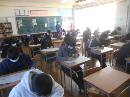 3年生の卒業テストの1日目です。5教科実施しました。