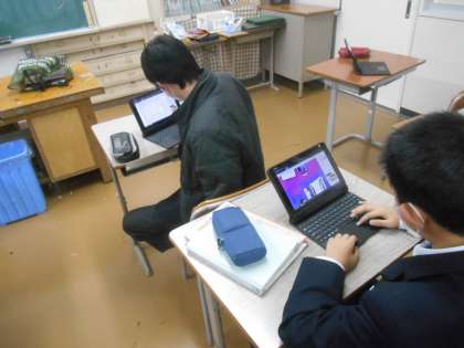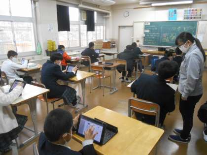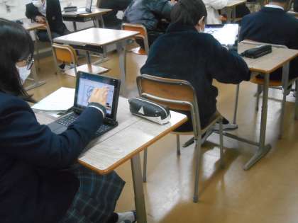 1年の美術です。四コマ漫画をタブレットを使って制作中です。今までなら考えられなかったことを当たり前のようにしています。すばらしい。