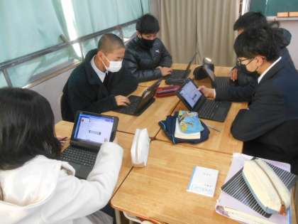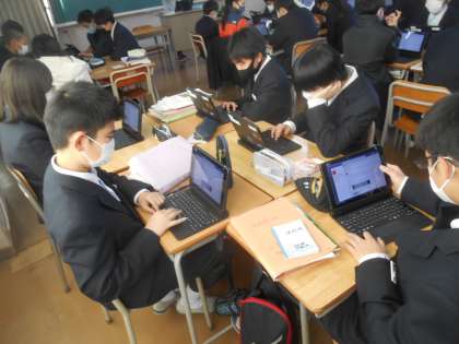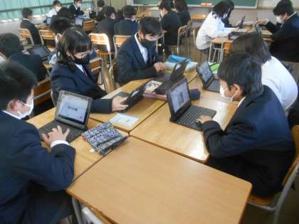 生徒集会のあと、タブレットを使って先ほどの生徒集会での話に対しての感想を送っているところです。こんな風にも活用できるのですね。すばらしい。