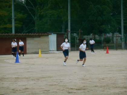 2年生の女子体育です。時間いっぱいどれだけ走れるかという授業です。精一杯の走りが見られました。すばらしいです。途中、スタミナ切れの生徒も出てきますが、それをサポートする生徒もいて、感動しました。ありがとう。